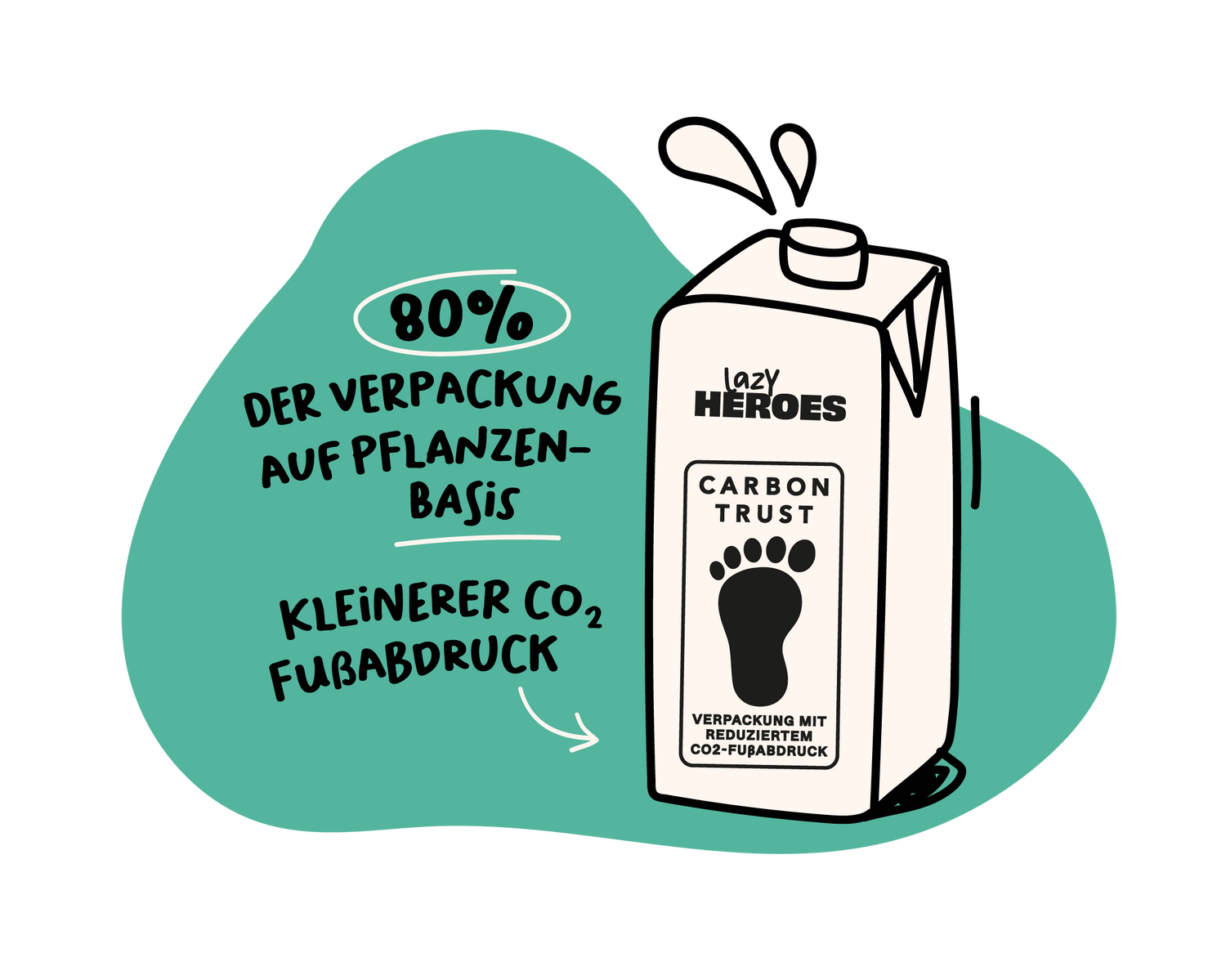 Die Lazy Heroes Tetra Paks haben außerdem einen erhöhten Anteil an pflanzenbasiertem Material und sparen im Vergleich zum herkömmlichen Karton 11% CO2 Emissionen. Wie? Das Plastik wird durch eine nachwachsende, pflanzliche Alternative, nämlich Zuckerrohr, ersetzt.